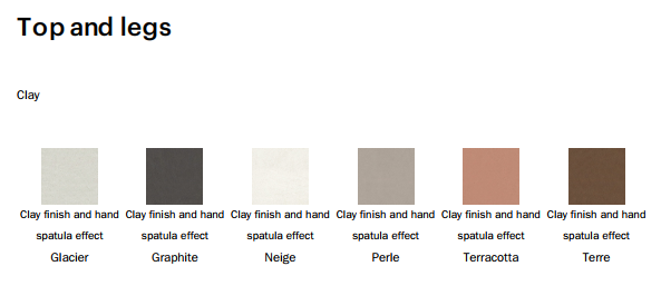 The table is available also in a special clay hand finished spatula effect which lends the item a sculptural look.