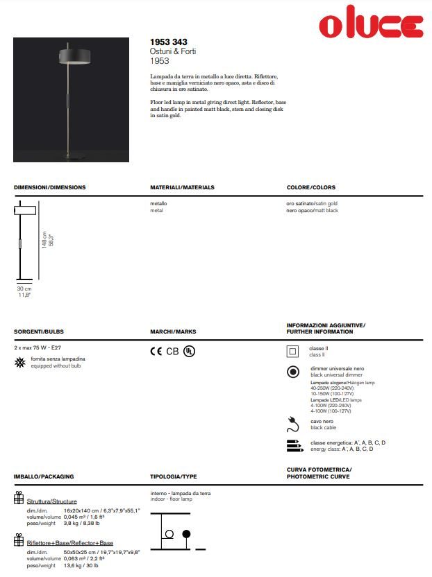 Η λάμπα του 1953 που σχεδιάστηκε από την Ostuni e Forti, έχει δύο μοντέλα, δάπεδο και τραπέζι, που ποικίλλουν σε αναλογία και μέγεθος αλλά πανομοιότυπα ως προς το σχεδιασμό τους που μετατοπίζει ολόκληρο το τμήμα του αμπαζούρ από το κέντρο στο πλάι.