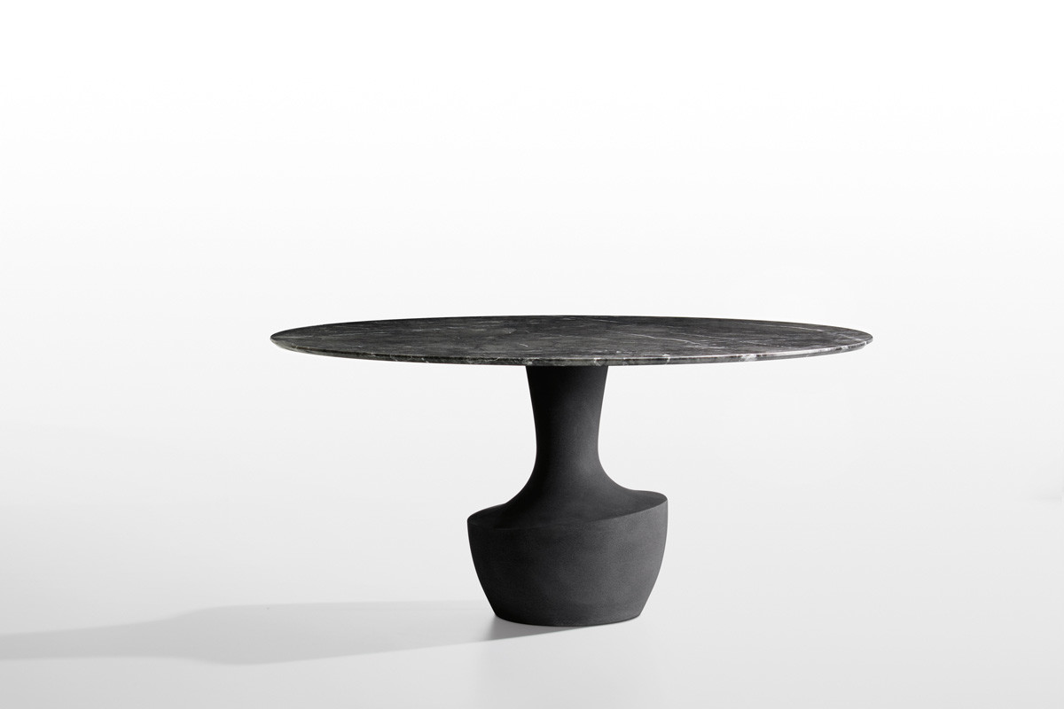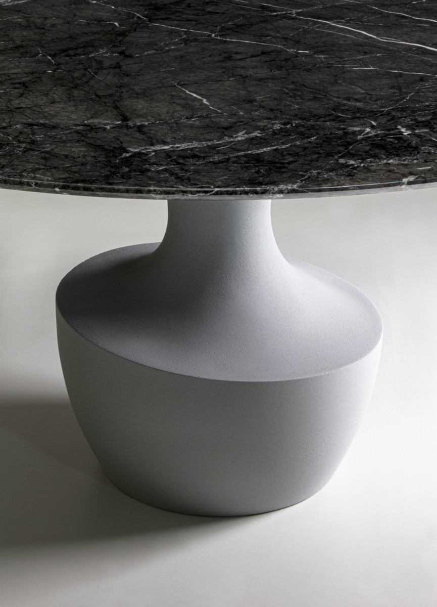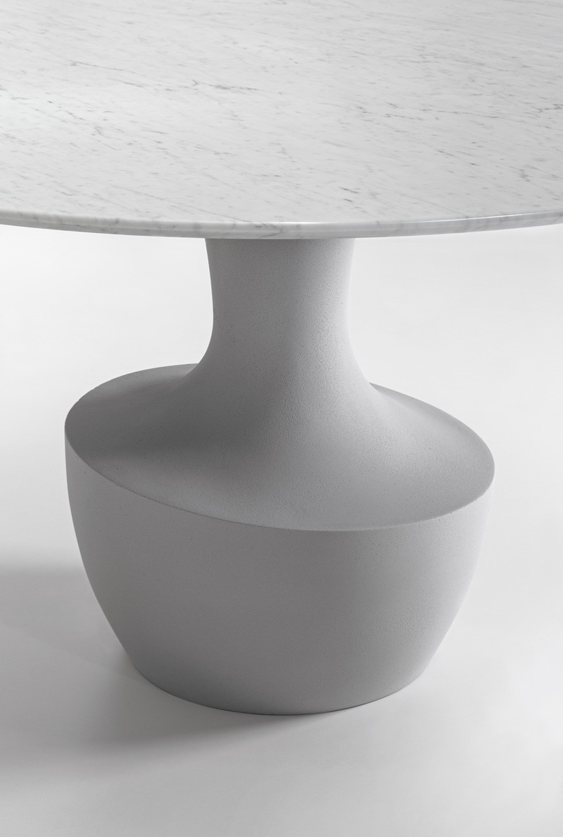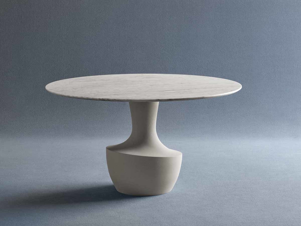 Το Anfora είναι ένα στρογγυλό τραπέζι σε δύο μεγέθη, με μαρμάρινη βάση διαθέσιμη στα φινιρίσματα της συλλογής, σε συνδυασμό με ένα λεπτό μπρονζέ γυαλί ή από καρυδιά Canaletto.