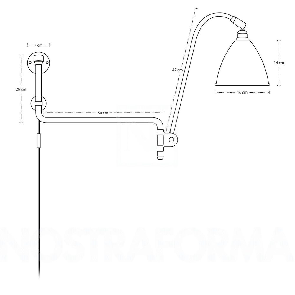 Ο βραχίονας του φωτιστικού μπορεί να επεκταθεί έως και 62εκ . και η λάμπα μπορεί να έχει κλίση έως και 90° στον κάθετο άξονα και να περιστραφεί 360°. Το καλώδιο είναι ίδιο χρώμα με το καπέλο .