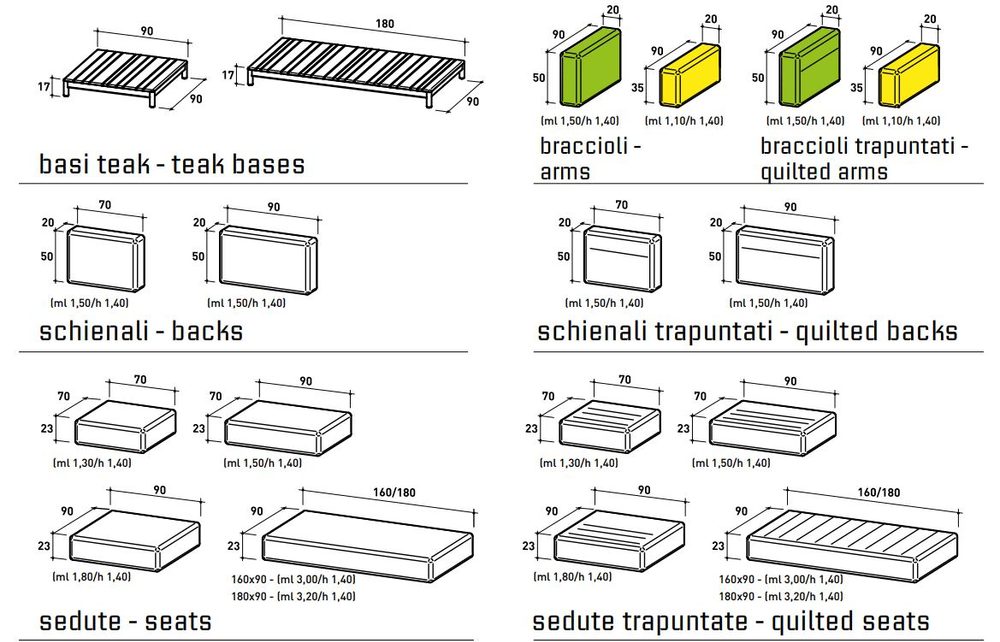 Διαθέσιμες βάσεις σε διαφορετικά μεγέθη με βάθος 90 cm και 110 cm.