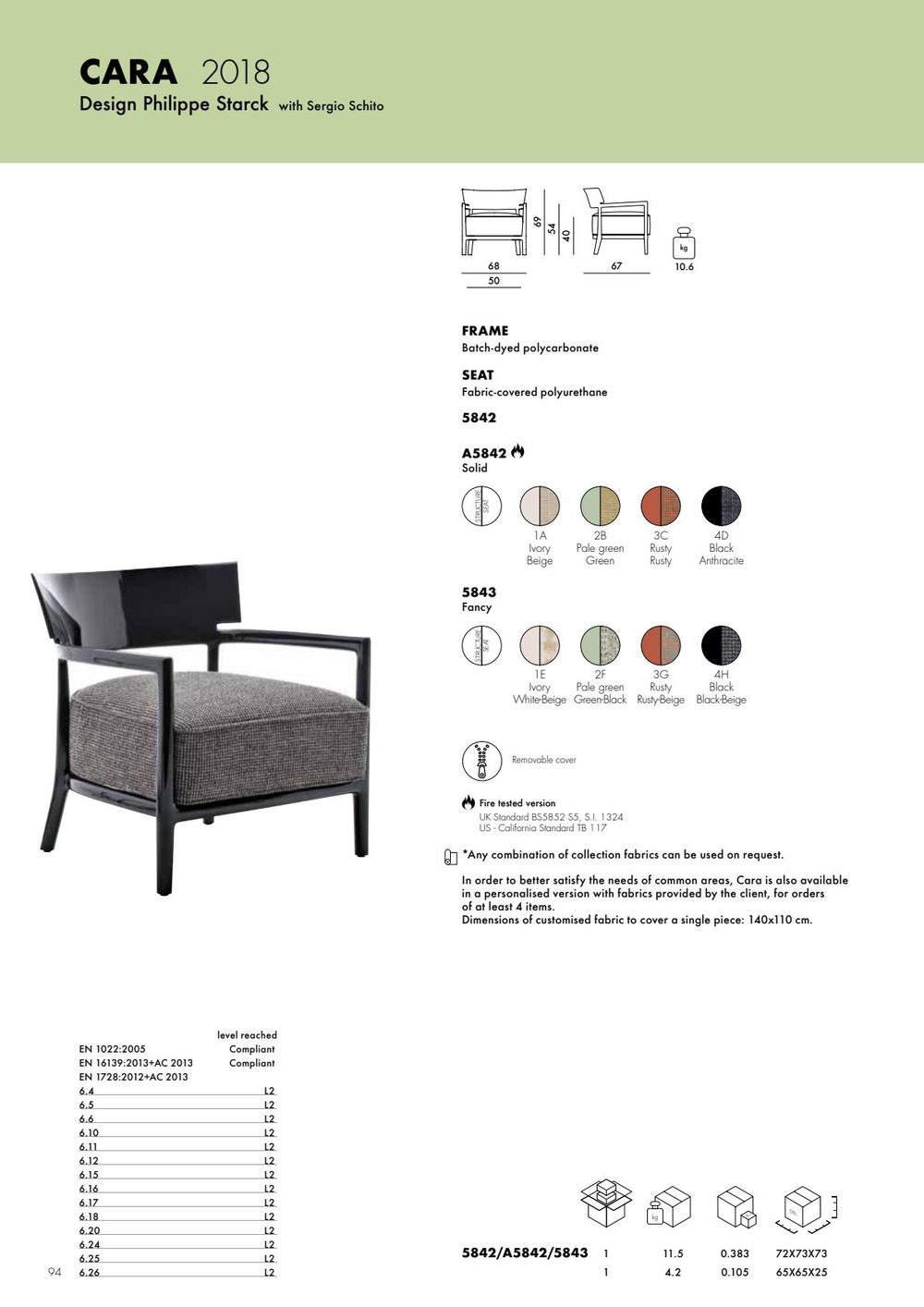 Η Cara είναι η νέα πολυθρόνα της kartell, σχεδιασμένη απο τον Philippe Starck. Η δομή διατιθεται σε τέσσερα διαφορετικά χρώματα, λευκό, πράσινο, της σκουριάς και μαύρο καθένα απο αυτά συνδυάζεται με ένα μαξιλαρι με pie de poule ή στοχρώμα της δομής.