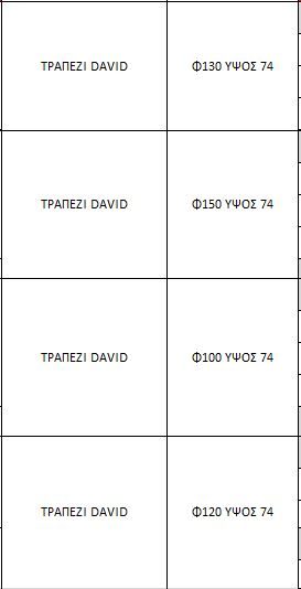 Σταθερή τραπεζαρία : Φ130x74h και Φ150x74h