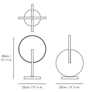 Το επιτραπέζιο Eclipse έχει μία αγαλματένια σιλουέτα και μία κίνηση που αλλάζει απο κάθε γωνία. Οι δίσκοι από χρώμιο και ακρυλικό που στηρίζονται σε μία βάση απο χρώμιο γυαλιστερό σαν καθρέπτη σε ενενήντα μοίρες για να γωνιάσουν την διάχυση του φωτός και να αποκαλύψουν πολλαπλές σιλουέτες.
