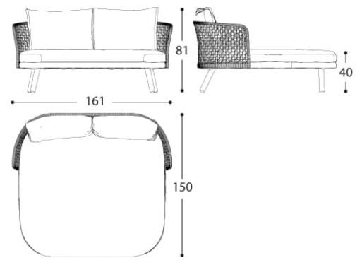 Η ιδιαίτερη υφαντική της πλάτης καθιστά αυτό το ανάκλιντρο μοναδικό, ενισχύοντας το σχήμα και το σχεδιασμό του.
