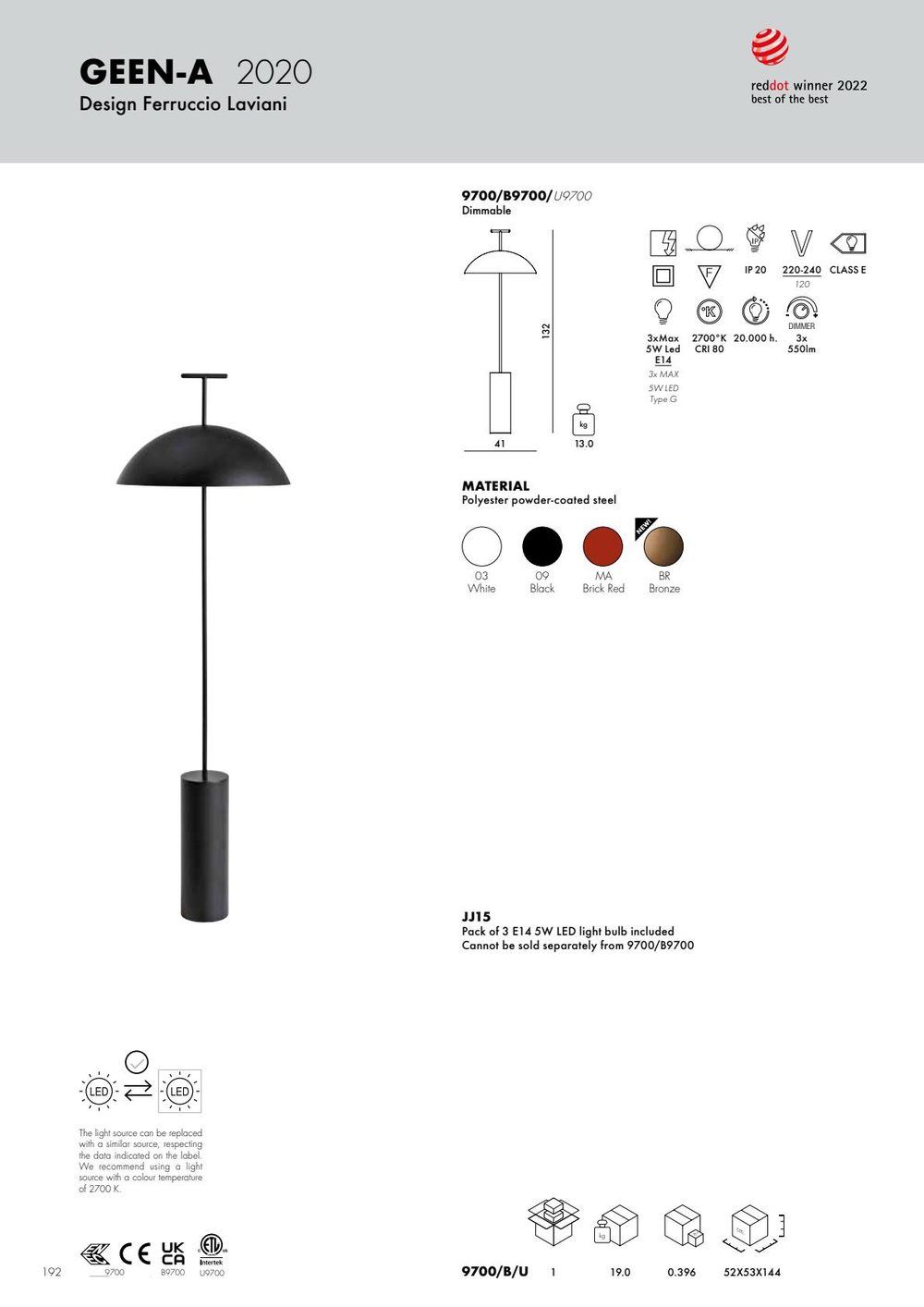 Το Geen-a είναι η λάμπα ανάγνωσης της Kartell, συμπληρώνοντας την γκάμα φωτισμού της μάρκας με ένα προϊόν σχεδιασμένο για αυτόν τον συγκεκριμένο σκοπό. Οι απλές γραμμές κρύβουν μια πραγματική αίσθηση στάσης, ενώ το καθαρό σχήμα έχει ένα γνώριμο αλλά ενδιαφέρον αποτέλεσμα. Το κομμάτι αποτελείται από μια βάση, ένα φωτιστικό, τρεις λαμπτήρες LED, ένα στέλεχος και μια λαβή για εύκολη μεταφορά, ενώ διατίθενται τρία χρώματα με ματ φινίρισμα: λευκό, μαύρο και τούβλο. Αυτή είναι μια απλή λάμπα, όπως το διάβασμα είναι μια από τις απλές απολαύσεις της ζωής.