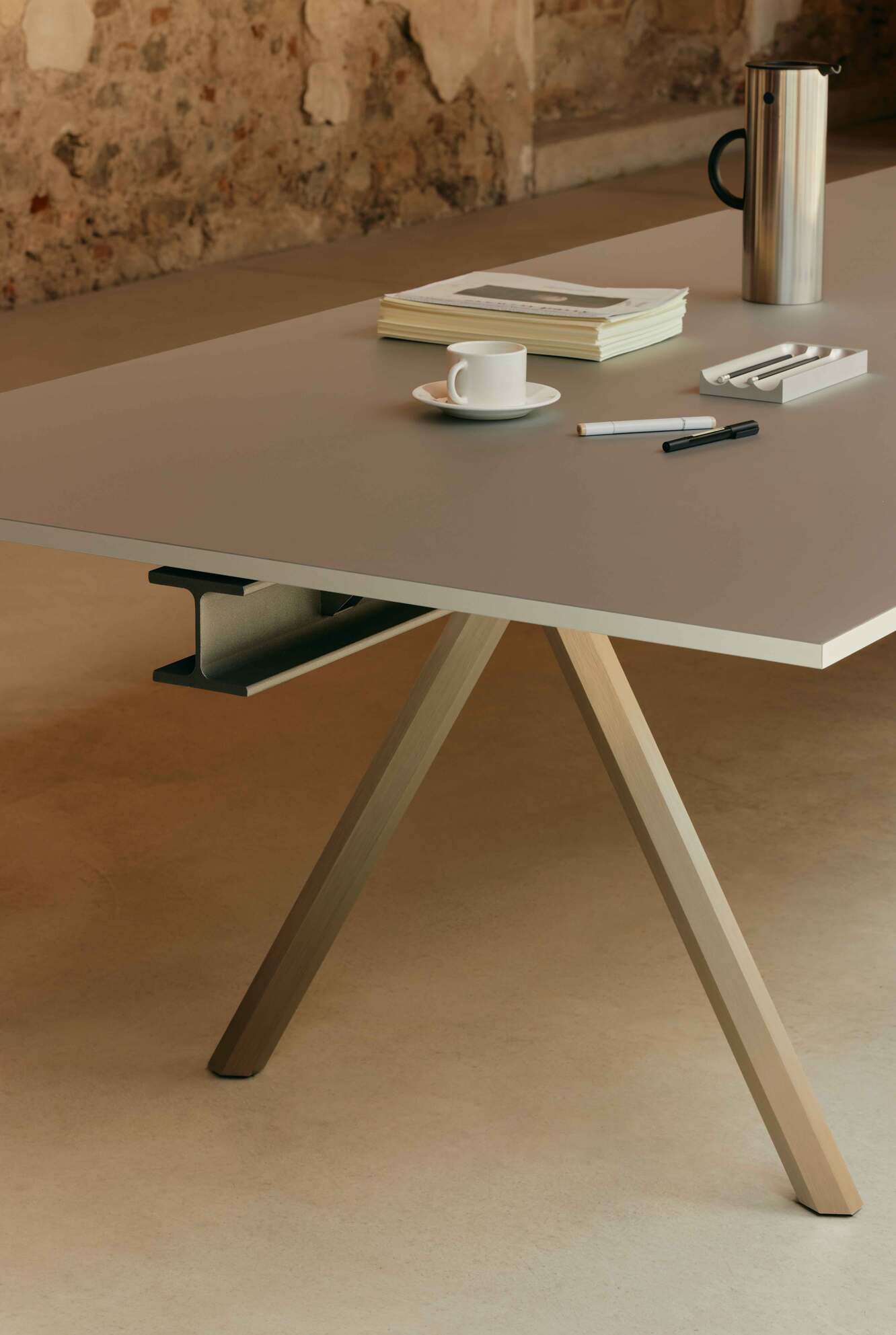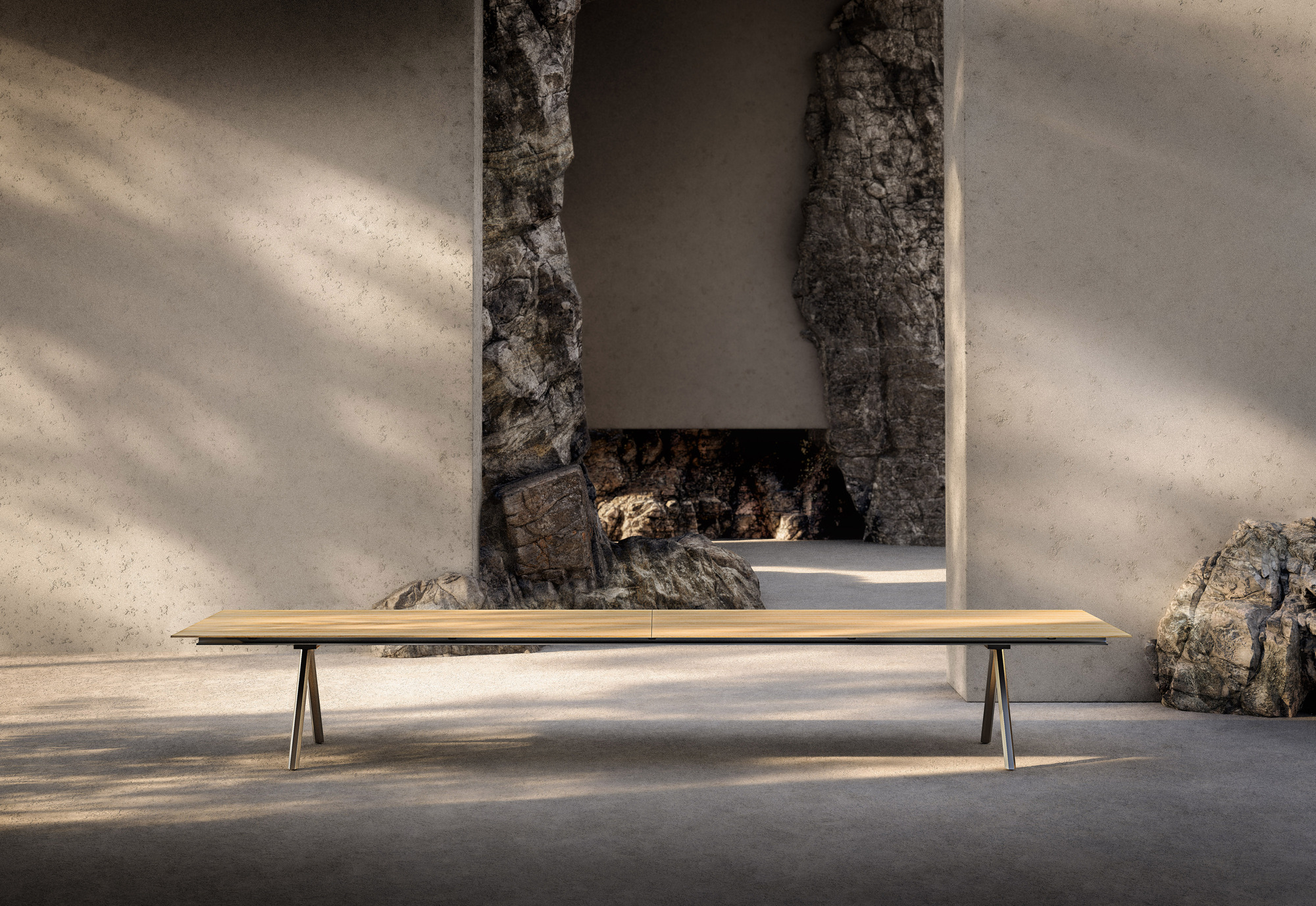 Το HEB είναι ένα τραπέζι που αφηγείται την ιστορία της αντοχής των υλικών και της ελαφρότητας του σχεδιαστικού σκεπτικού. Οι αιχμηρές γραμμές και το αρχιτεκτονικό προφίλ του θυμίζουν βιομηχανικές κατασκευές, μεταμορφωμένες σε ένα αντικείμενο με κομψό, μετρημένο χαρακτήρα. Κάθε λεπτομέρεια — από τις αναλογίες έως τα φινιρίσματα — εκφράζει την ισορροπία μεταξύ τεχνικής και ποίησης. Στις εικόνες, το HEB γίνεται ο πρωταγωνιστής μιας αιωρούμενης ατμόσφαιρας, όπου το μέταλλο μετατρέπεται σε γραφικό σύμβολο και το φως ενισχύει την καθαρότητά του. Ένα τραπέζι που δεν επιβάλλεται, αλλά ορίζει τον χώρο με σιωπηλή αυθεντία.