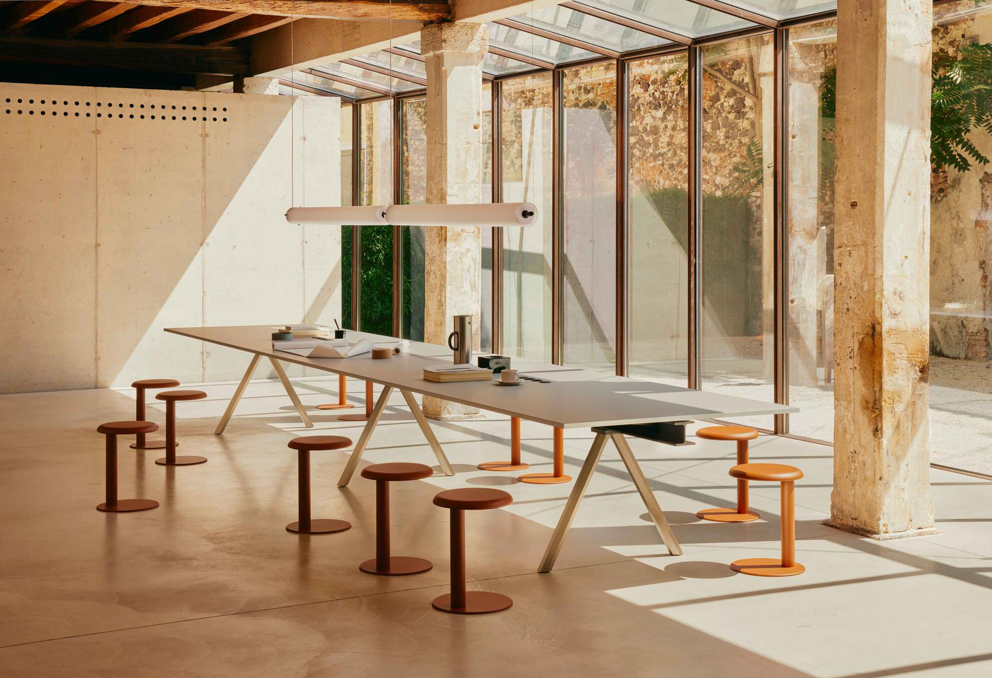 Ένα τραπέζι με έντονα βιομηχανικό στυλ,