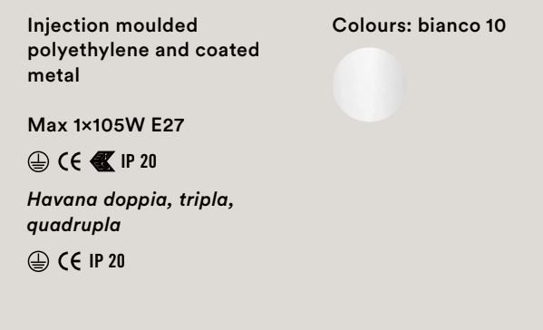 Σχεδιασμένο από τον Jozeph Forakis το 1993, το κρεμαστό κόσμημα της Αβάνας εμπνέεται άμεσα από το σχήμα ενός πούρου, που αποτελείται από τέσσερα μέρη που συγκρατούνται από μικροσκοπικά μεταλλικά δαχτυλίδια. Το υπέροχο λευκό φινίρισμα επιτρέπει στο φως να διαχέεται, δημιουργώντας μια ζεστή, απαλή λάμψη που είναι φιλόξενη, φιλόξενη και χαλαρωτική. Τα μικρά κενά μεταξύ των τμημάτων σημαίνει ότι το φως διαφεύγει ελαφρώς, δημιουργώντας ζώνες φωτός που βοηθούν στην εκπομπή ενός συνολικού φωτισμού, ιδανικό για τον τέλειο φωτισμό του δωματίου. Το κρεμαστό φως της Αβάνας είναι υπέροχο για σαλόνια, τραπεζαρία και χωλ σε επαγγελματικές και οικιακές εγκαταστάσεις. Το μενταγιόν είναι και μια κομψή και κλασική επιλογή και είναι πλέον ένα εμβληματικό κομμάτι που εμφανίζεται σε μια μόνιμη έκθεση στο New York MoMA.
