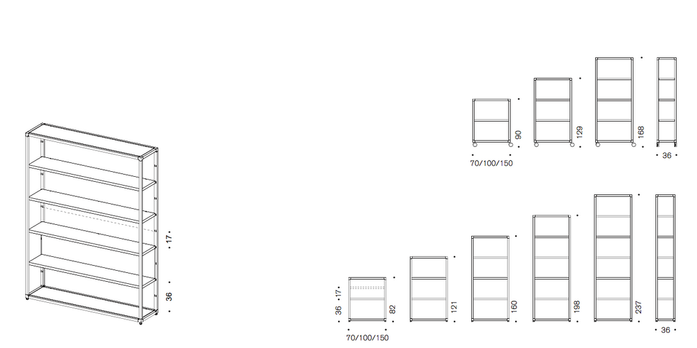 Ένα σύστημα ραφιών για βιβλία φτιαγμένο απο χάλυβα, die-cast αλουμίνιο και ράφια από τετράγωνο μεταλλικό πλαίσιο.