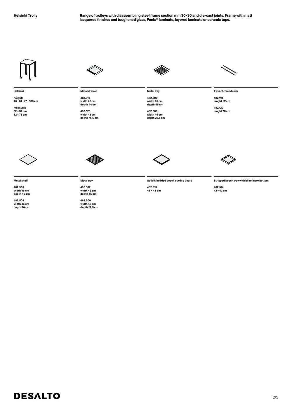 Σύστημα τροχήλατων που χαρακτηρίζεται από αποσυναρμολογούμενη κατασκευή από χάλυβα με διατομή 30x30 mm και χυτά εξαρτήματα σύνδεσης. Το σύστημα Helsinki Trolly ταιριάζει απόλυτα σε οποιονδήποτε χώρο, προσφέροντας λειτουργικότητα και σύγχρονο σχεδιασμό υψηλής ποιότητας. Σχεδιασμένα για να προσαρμόζονται στις δυναμικές ανάγκες οποιουδήποτε περιβάλλοντος, αυτά τα καρότσια προσφέρουν έναν εξαιρετικό συνδυασμό λειτουργικότητας και στυλ. Εξοπλισμένα με μια στιβαρή και ανθεκτική δομή, τα Helsinki Trolly έχουν σχεδιαστεί για να καλύπτουν ένα ευρύ φάσμα χρήσεων. Με μια ποικιλία διαμορφώσεων και αξεσουάρ διαθέσιμων, μπορείτε να προσαρμόσετε το σύστημα καροτσιών ώστε να ταιριάζει απόλυτα στο χώρο και στις δραστηριότητές σας.