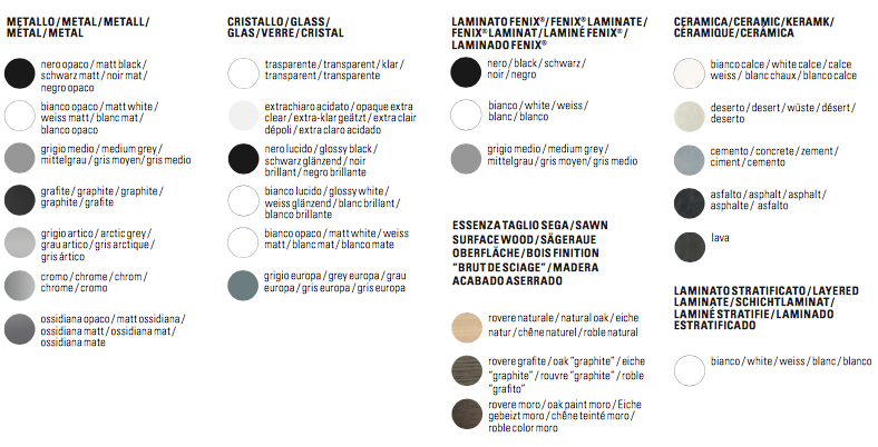 Επιφάνειες σε γυαλί, Fenix Laminate, Ξύλο με επεξεργασία sawn surface, κεραμικό ή λεπτό μεταλλικό φύλο.