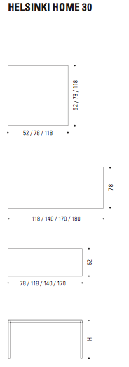 Τετράγωνο, Παραλληλόγραμμο και ακόμη κυκλικό τραπέζι με τρία πόδια, το πιο 'extreme' τραπέζι της σειράς Helsinki.