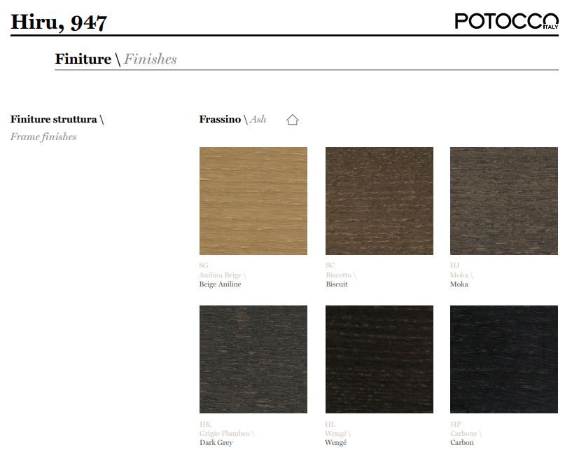 Πλαίσιο από μασίφ ξύλο τέφρας με κάθισμα και πλάτη με επένδυση από πυρίμαχο αφρό πολυουρεθάνης. Φινιρίσματα και επικαλύψεις σύμφωνα με τη συλλογή.
