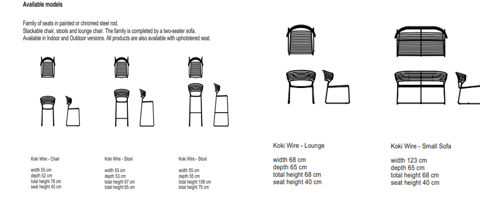 Το τραβηγμένο ατσάλι που χρησιμοποιείται σε μέγεθος μειωμένο στο μέγιστο, δημιουργεί ένα αιθέριο σώμα με συμπαγή γεωμετρία και ένα καθοριστικό και κωνικό γραφικό πρόσημο. Διατίθεται και με κάθισμα από ενσωματωμένη πολυουρεθάνη, κατάλληλο και για εξωτερική χρήση. Μια τέλεια ισορροπία μορφής, λειτουργίας και καινοτομίας, συναρπαστική από κάθε άποψη.