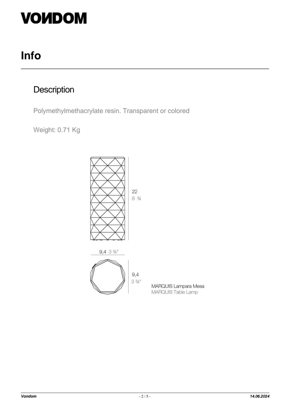 Το Marquis, που σχεδιάστηκε από την Estudi{H}ac για τη Vondom, είναι μια συλλογή ζαρντινιέρων από την έμπνευση της κοπής διαμαντιών. Ο πολυγωνικός σχεδιασμός του θυμίζει όψεις που δημιουργήθηκαν μέσω κοπής. Περιλαμβάνει επίσης επιτραπέζιο φωτιστικό.
