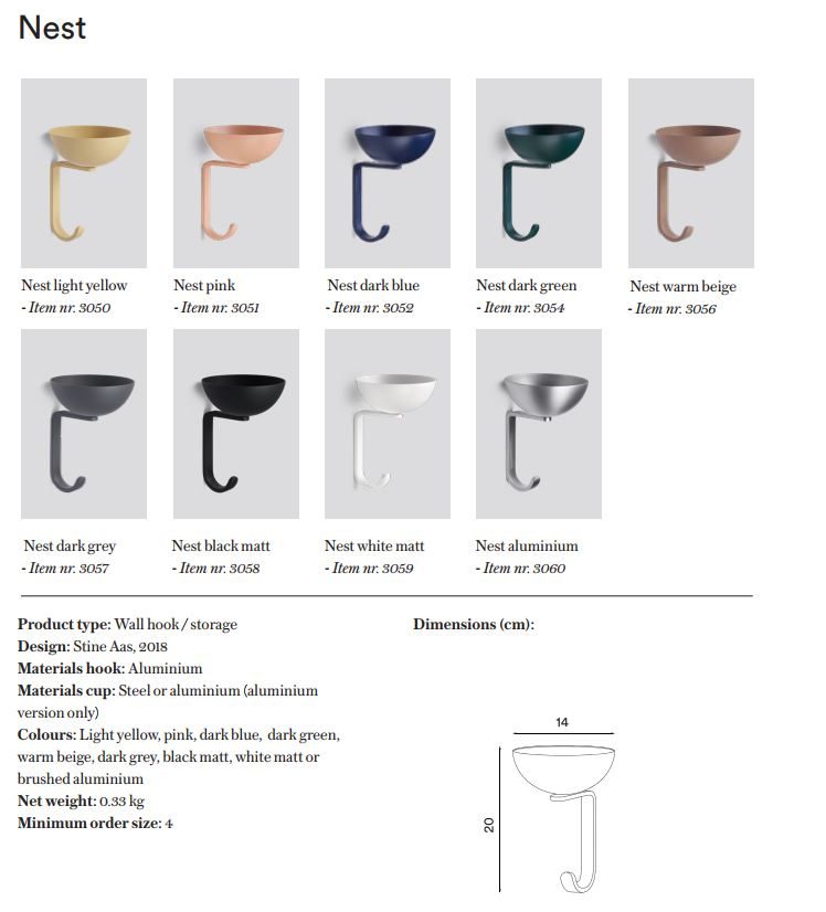 Ο γάντζος τοίχου Nest έχει μέγεθος για να κρεμάσετε παλτό, κασκόλ, πετσέτες και διακοσμητικά αντικείμενα. Διατίθεται σε εννέα χρώματα και ταιριάζει εύκολα με εσωτερικούς τοίχους, κολώνες.