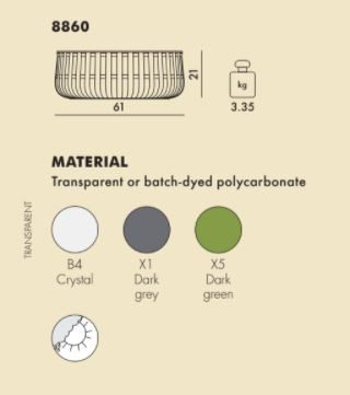 Το Panier έχει κατασκευαστεί από διαφανές πολυεστέρα, διατίθεται σε πολλά και ποικίλα χρώματα, είναι πρακτικό, εκλεκτικό, με εκλυστική και παιχνιδιάρικη εμφάνιση.