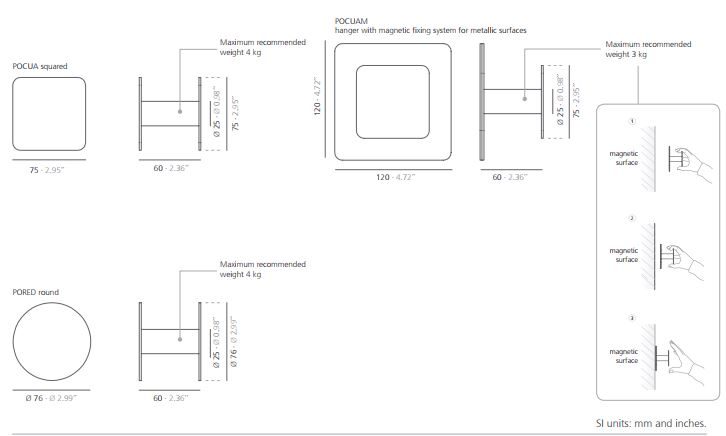 Ελκυστικές κρεμάστρες τοίχου με μεγάλη ποικιλία σχημάτων ( στρόγγυλα και τετράγωνα ) και χρωμάτων που επιτρέπουν πολλές συνθέσεις. Διατίθεται και σε μαγνητικό για μεταλλικές επιφάνειες. Κατασκευασμένες απο βαμμένο ατσάλι με ένα απλό σύστημα τοποθέτησης.