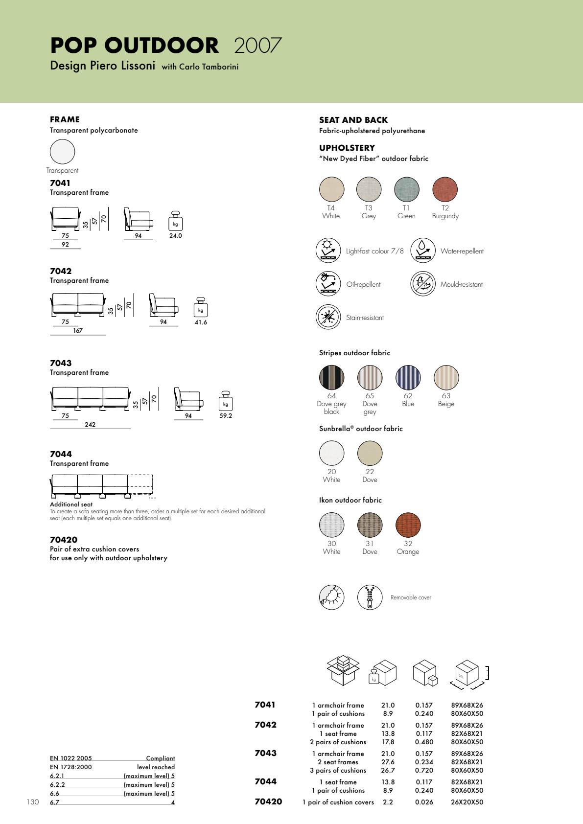 Το Pop outdoor είναι ένας αρθρωτός καναπές με λεπτές γραμμές, που χαρακτηρίζεται από μεγάλα μαξιλάρια καθίσματος και πλάτης που τον καθιστούν μαλακό και άνετο, κατασκευασμένο με υφάσματα ειδικά σχεδιασμένα για εξωτερική χρήση. Η συλλογή Pop συμπληρώνεται από μια πολυθρόνα με τα ίδια χαρακτηριστικά.