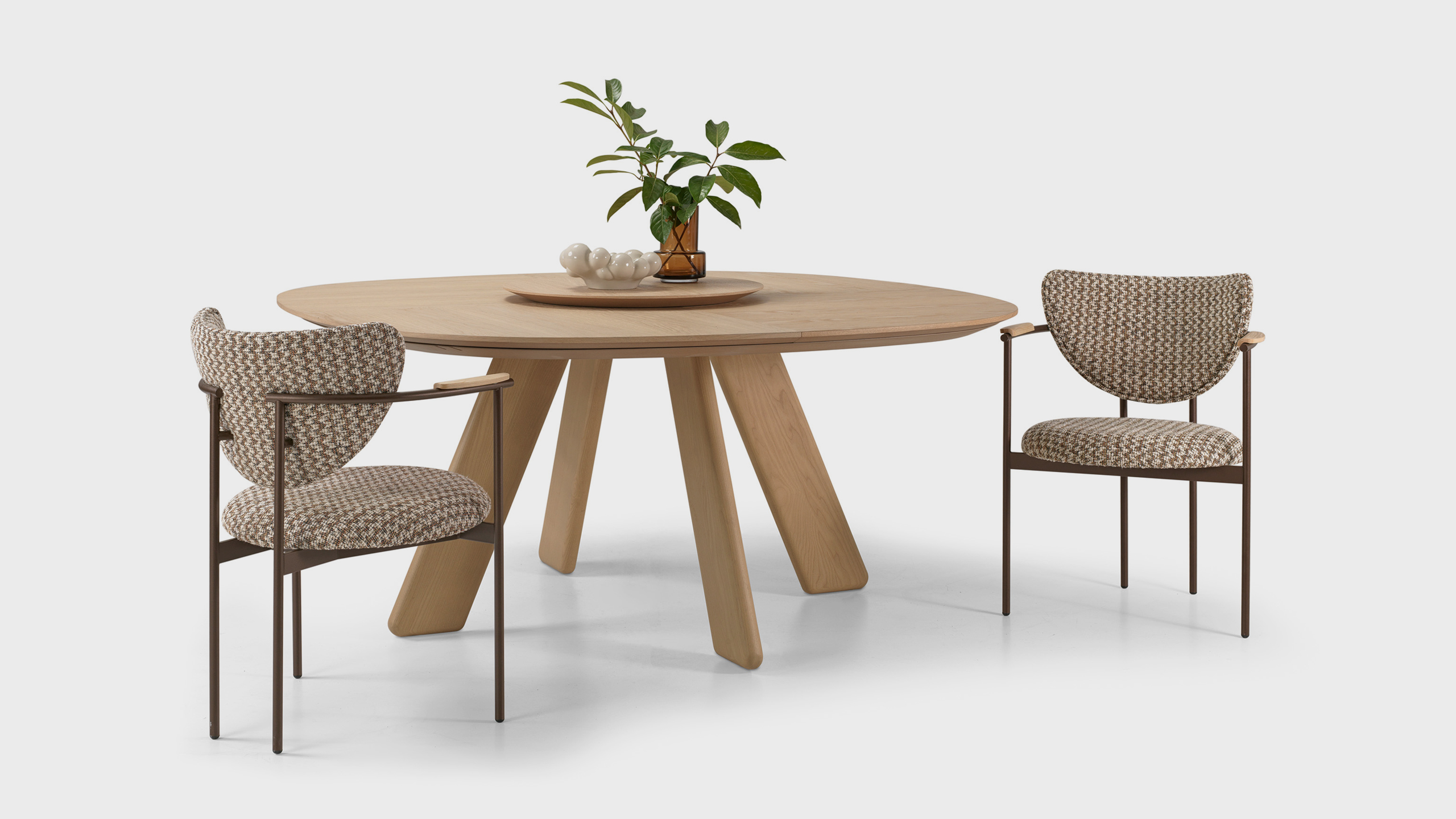 Η Prospero είναι μια καρέκλα που ενσωματώνει κομψότητα και άνεση μέσα από τον αρμονικό συνδυασμό μεταλλικού σκελετού, υφάσματος και ξύλινων λεπτομερειών στα μπράτσα. Ιδανική για τραπεζαρίες, χώρους αναμονής ή καθιστικά με μοντέρνα διάθεση.