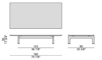 Ορθογώνιο τραπεζάκι σαλονιού με εσοχή στη βάση από μασίφ καναλί καναλέτας με βουρτσισμένο ορείχαλκο στα πόδια και μαρμάρινη κορυφή.