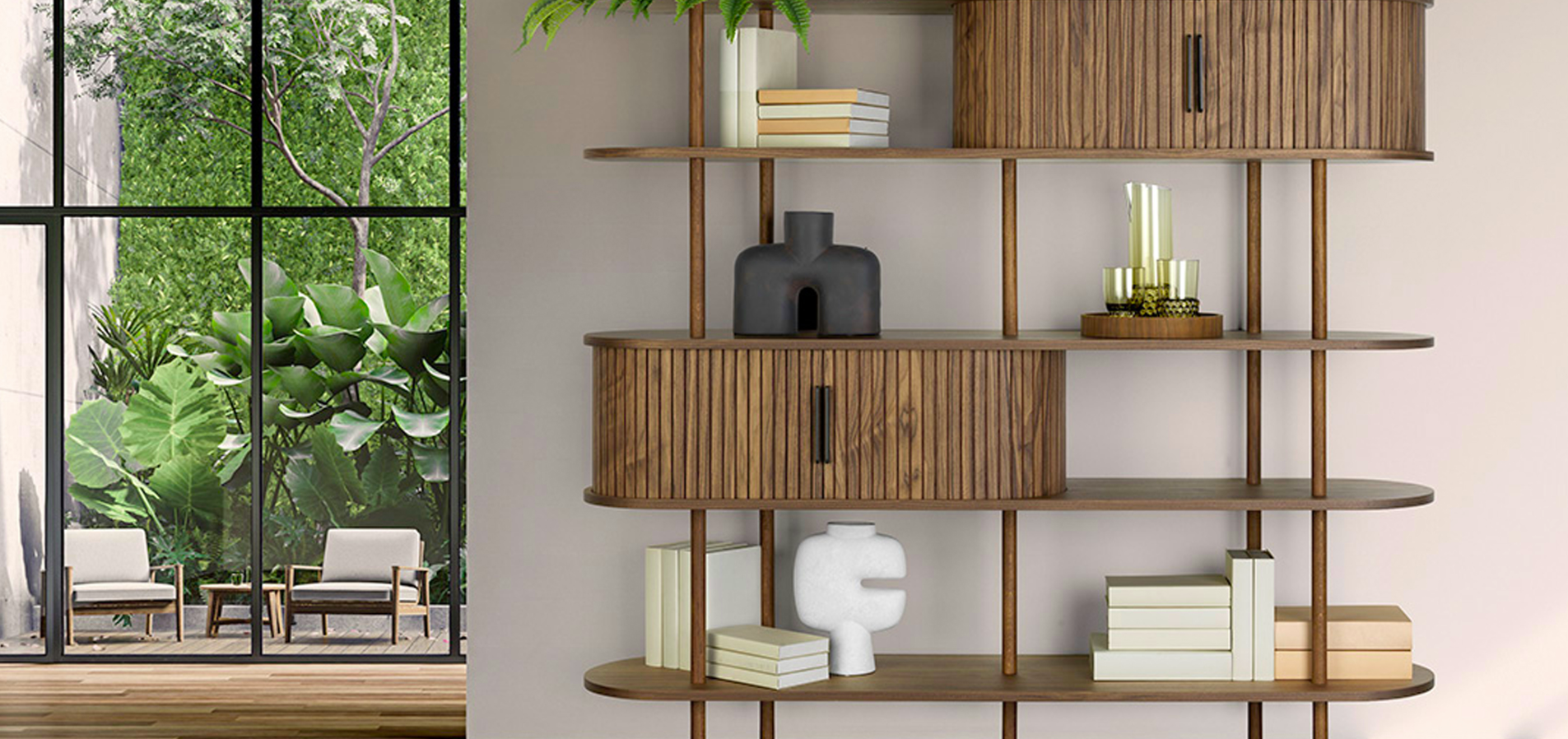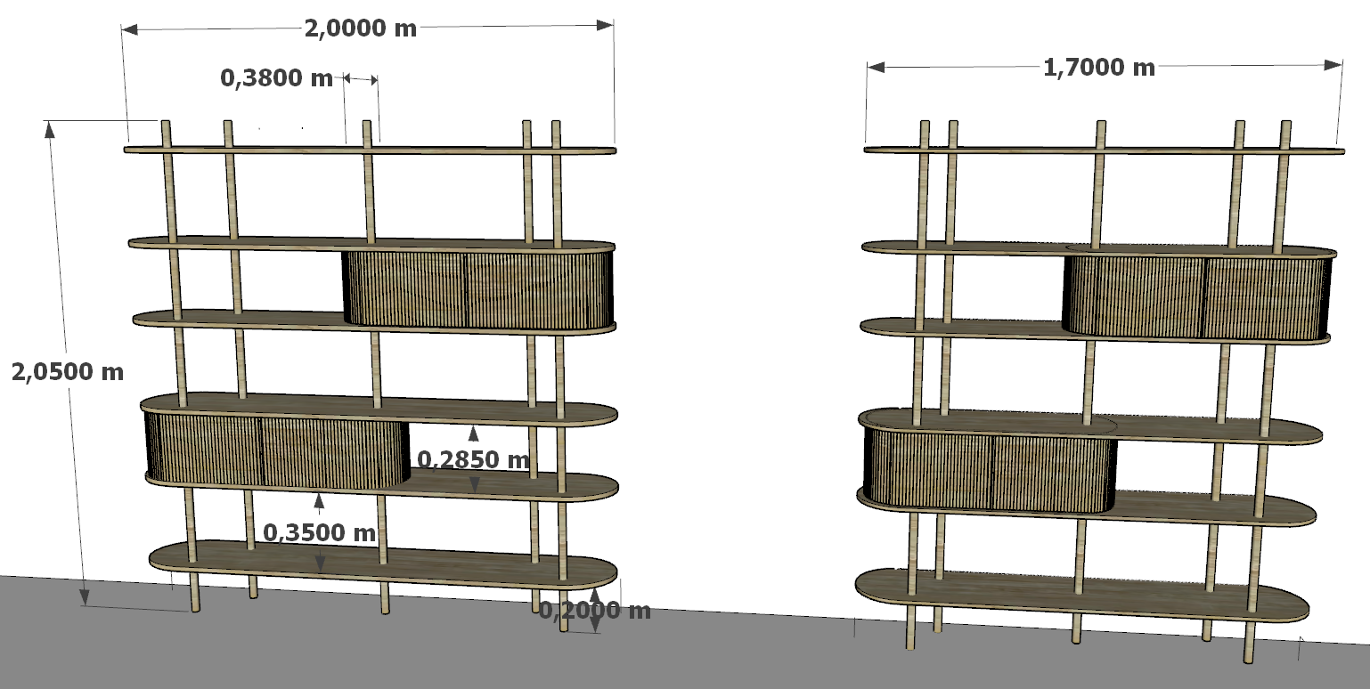 Βιβλιοθήκη της σειράς Quinta από καρυδιά ή δρυ (σε διάφορα χρώματα), με συρόμενο roller.Διαστάσεις (σε cm): 170x38xY205, 200x38xY205