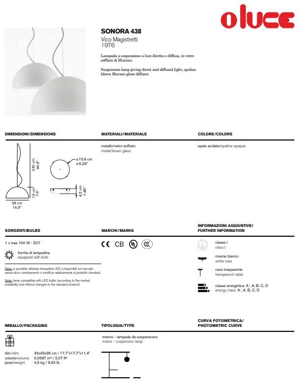 Βασική πηγή έμπνευσής του, πάντα και σε κάθε περίπτωση, είναι η απλοποίηση. Η Sonora, που δημιουργήθηκε το 1976, διαθέσιμη σε διάφορα υλικά και μεγέθη, είναι ένα από τα σύμβολα αυτής της δημιουργικής διαδρομής και παραμένει, για όλα τα 40 χρόνια ύπαρξής της, ένας από τους πιο εκτιμημένους λαμπτήρες όχι μόνο από το κοινό αλλά και από τον ίδιο τον Magistretti.