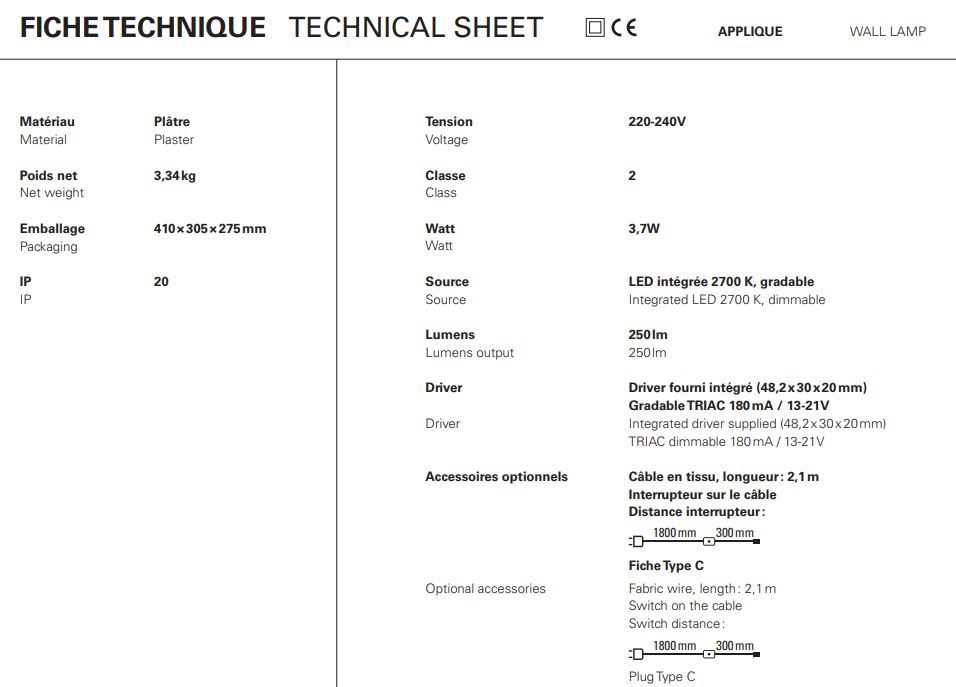 Η συλλογή SOUL περιλαμβάνει 5 λευκά σοβά φώτα με ή χωρίς χρυσή διακόσμηση φύλλων και μια γωνιακή sconce για φωτισμό διαδρόμου. Με βάρος μεταξύ 3,7 και 5,2 κιλών, τα φώτα της ψυχής είναι εξοπλισμένα με ενσωματωμένο φωτισμό LED.