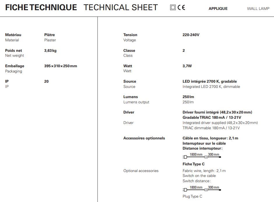 Η συλλογή SOUL περιλαμβάνει 5 λευκά σοβά φώτα με ή χωρίς χρυσή διακόσμηση φύλλων και μια γωνιακή sconce για φωτισμό διαδρόμου. Με βάρος μεταξύ 3,7 και 5,2 κιλών, τα φώτα της ψυχής είναι εξοπλισμένα με ενσωματωμένο φωτισμό LED.