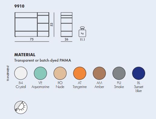 Σύστημα ραφιών,πολυμορφικό για πολλές χρήσεις που στοιβάζεται και μπορεί να συντεθεί για να προσφέρει την δυνατότητα δημιουργίας πολλών διαφορετικών γεωμετρικών και χρωματικών συνθέσεων.Αυτό το αντικείμενο μπορεί να χρησιμοποιηθεί ως έπιπλο και ως σεπαρέ. Είναι ένα αντικείμενο που μπορεί εύκολα να τοποθετηθεί σε οποιδήποτε χώρο του μπάνιου ή και σε άλλα δωμάτια του σπιτιού.