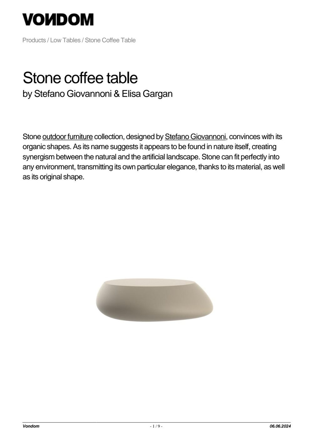 Η πέτρινη συλλογή επίπλων εξωτερικού χώρου, σχεδιασμένη από τον Stefano Giovannoni, πείθει με το οργανικό πετρώδες σχήμα. Όπως υποδηλώνει το όνομά του φαίνεται να βρίσκεται στην ίδια τη φύση, δημιουργώντας συνέργεια μεταξύ του φυσικού και του τεχνητού τοπίου. Η πέτρα μπορεί να χωρέσει τέλεια σε οποιοδήποτε περιβάλλον, μεταδίδοντας τη δική του ιδιαίτερη κομψότητα, χάρη και στο υλικό του.