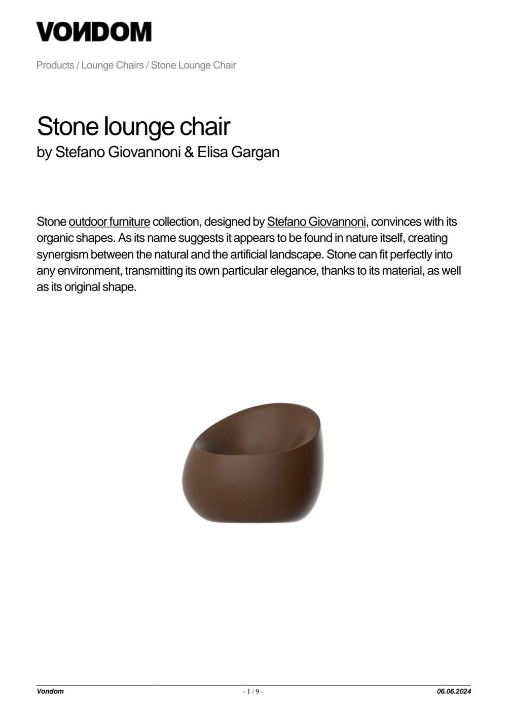 Η πέτρινη συλλογή επίπλων εξωτερικού χώρου, σχεδιασμένη από τον Stefano Giovannoni, πείθει με το οργανικό πετρώδες σχήμα. Όπως υποδηλώνει το όνομά του φαίνεται να βρίσκεται στην ίδια τη φύση, δημιουργώντας συνέργεια μεταξύ του φυσικού και του τεχνητού τοπίου. Η πέτρα μπορεί να χωρέσει τέλεια σε οποιοδήποτε περιβάλλον, μεταδίδοντας τη δική του ιδιαίτερη κομψότητα, χάρη και στο υλικό του.