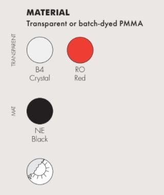 Ένα αντικείμενο πολύ ποιητικό, πολύ θηλυκό, εξαιρετικά κομψό που γεννιέται από την έρευνα και από τον τεχνολογικό πειραματισμό. Διατίθεται σε διαφανές ή σε χρωματιστό διαφανές, και σε τρία διαφορετικά ύψη.