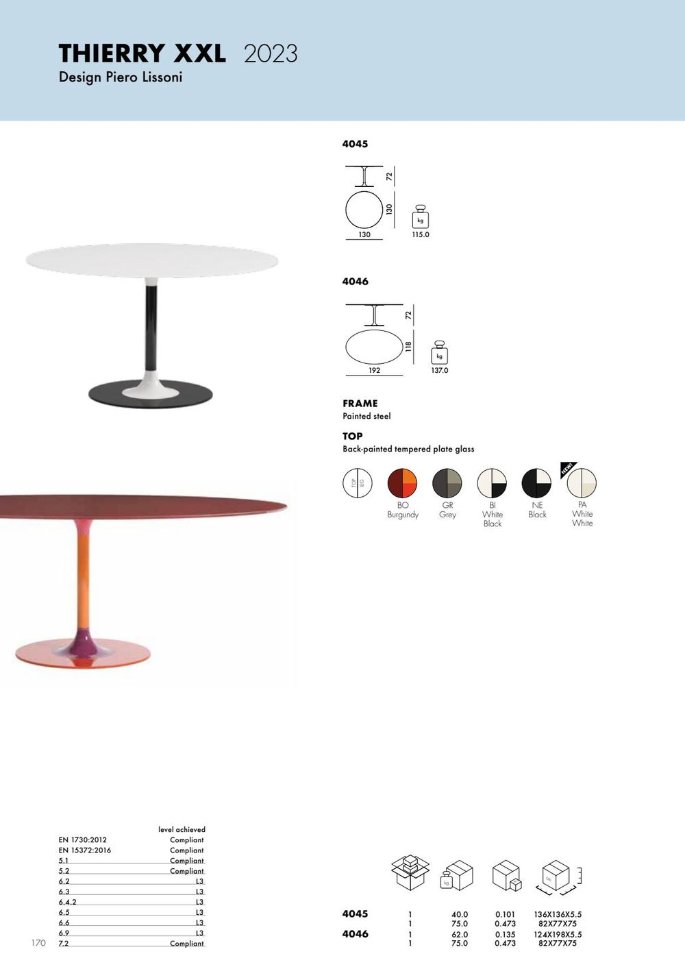 Η οικογένεια των τραπεζιών «κόσμημα» επεκτείνεται με το THIERRY XXL, σχεδιασμένο για φαγητό σε οβάλ και στρογγυλές εκδόσεις, ολοκληρώνοντας τη σειρά THIERRY BISTROT, σχεδιασμένη για ατμόσφαιρες lounge bar.