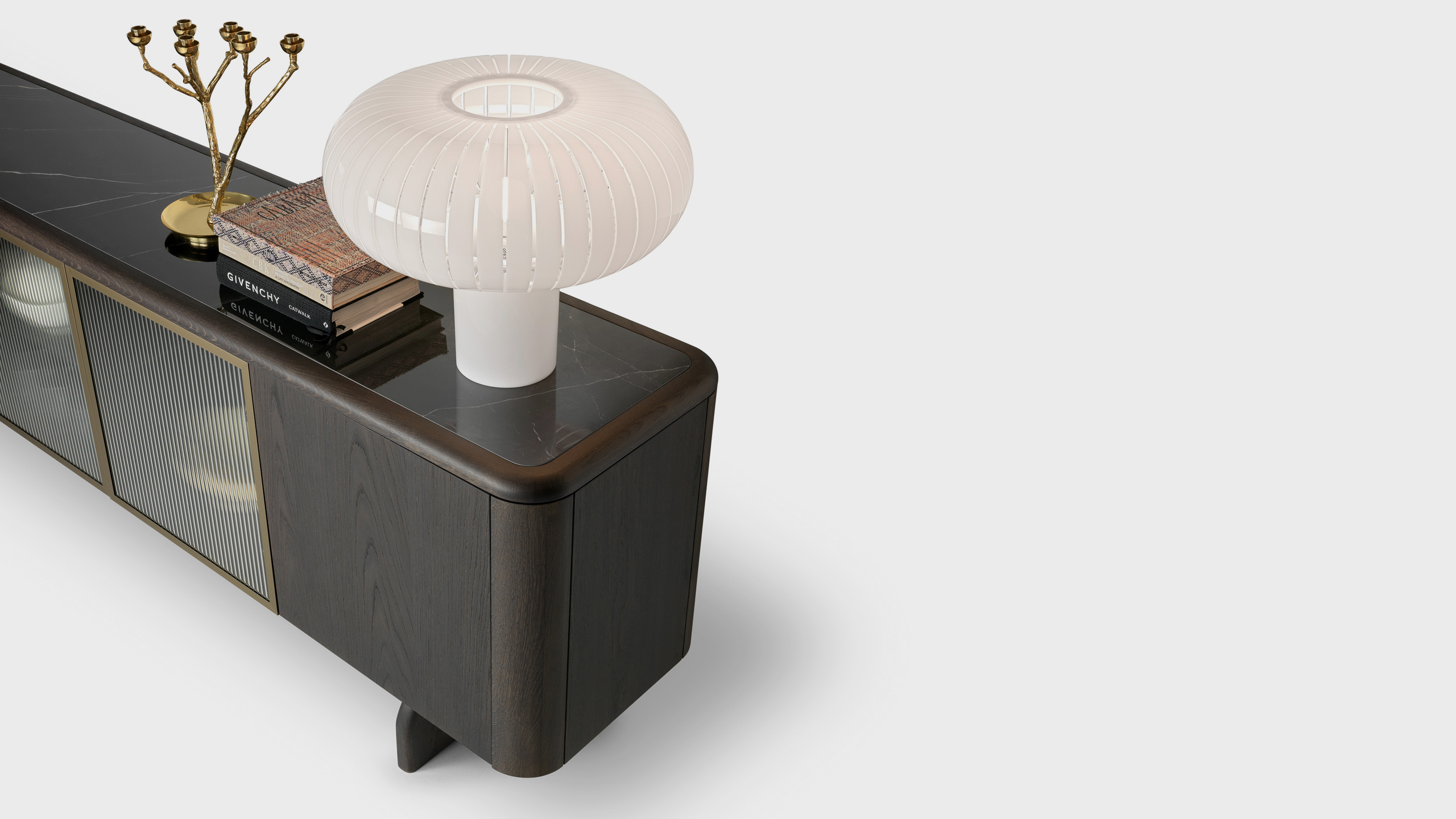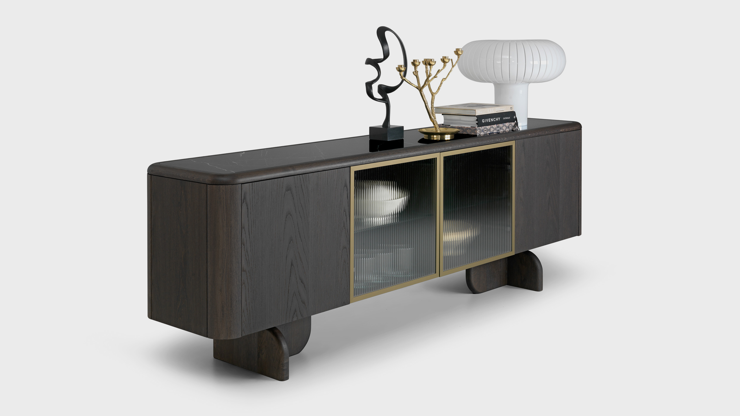 Ο μπουφές Tiberius αποτελεί ένα κομψό έπιπλο υψηλής αισθητικής και ποιότητας, σχεδιασμένο αποκλειστικά για τη σειρά homad exclusive από τον Μανώλη Γιαννουλάδη. Κατασκευάζεται από ξύλο δρυός (σε διάφορα χρώματα) και καρυδιά, με προαιρετική επιφάνεια από κεραμικό (ματ ή γυαλιστερό).