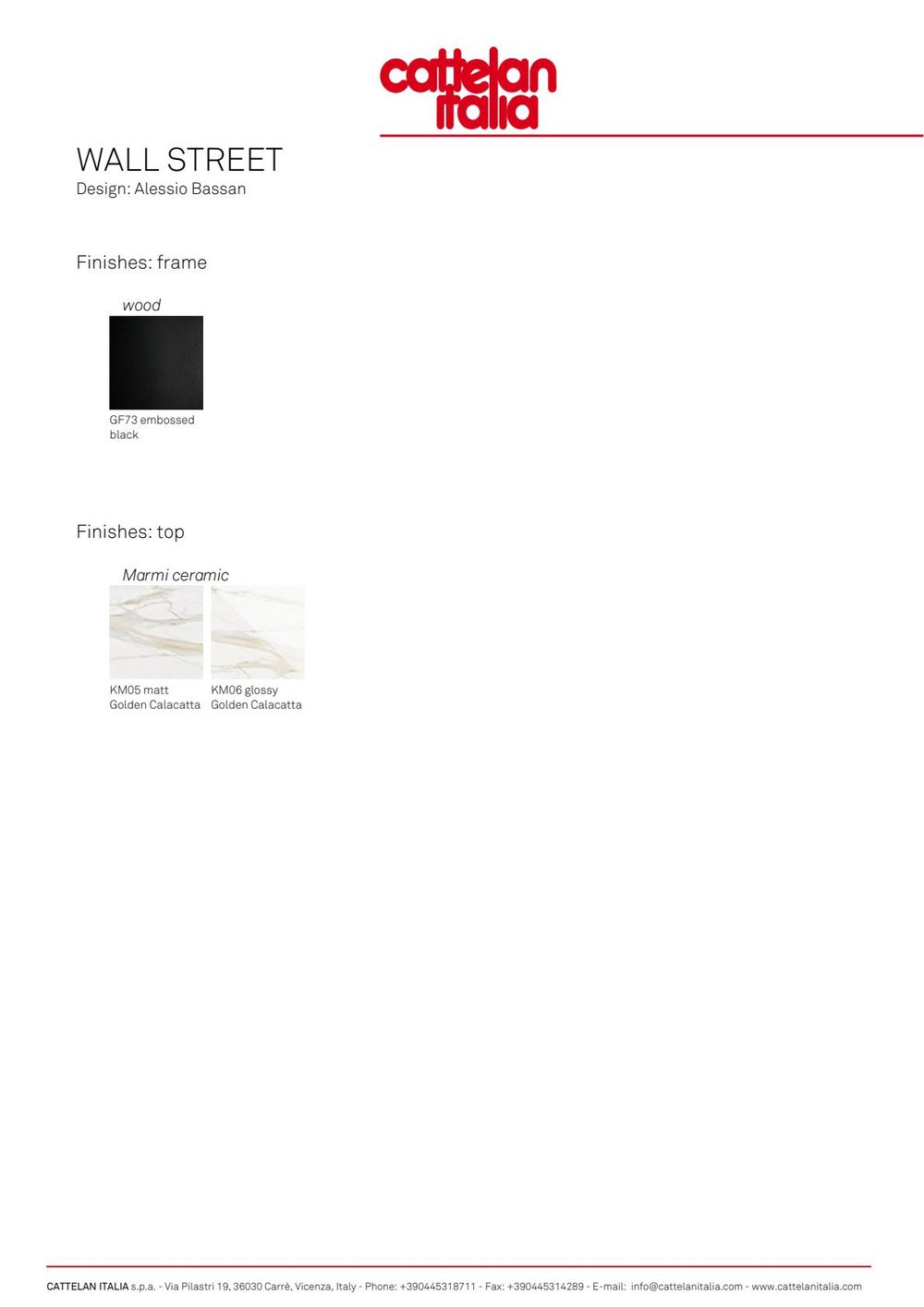 Η μίνιμαλ κατασκευή του είναι φτιαγμένη από ανάγλυφο λακαριστό MDF σε μαύρο χρώμα (GF73), προσφέροντας έναν κομψό και σύγχρονο χαρακτήρα. Το γραφείο ολοκληρώνεται με μια εκλεπτυσμένη κεραμική επιφάνεια Golden Calacatta, διαθέσιμη σε ματ (KM05) ή γυαλιστερό (KM06) φινίρισμα, η οποία προσθέτει πολυτέλεια και απαλύνει τη λιτή του εμφάνιση.