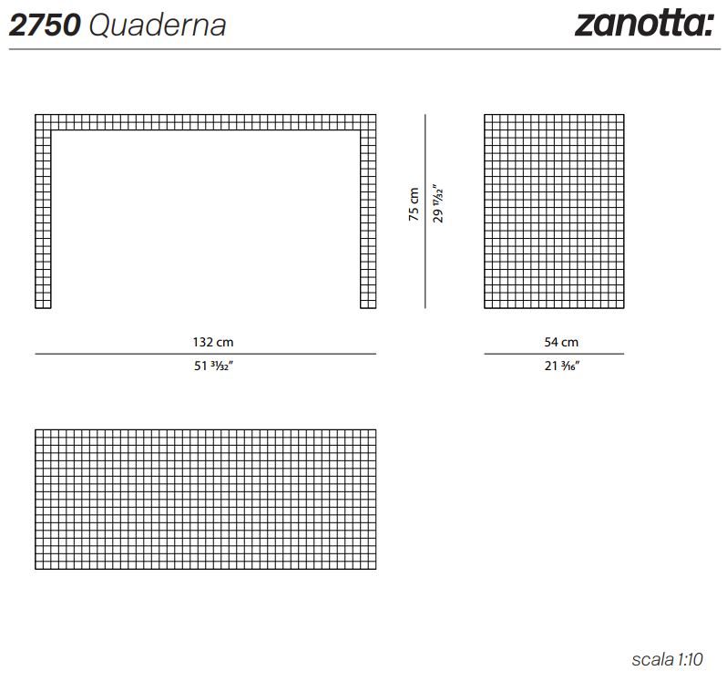 Κυψελωτή δομή πυρήνα επικαλυμμένη με λευκό φύλλο εκτύπωσης, ψηφιακά τυπωμένο με μαύρα τετράγωνα σε απόσταση 3 εκατοστών. Το επάνω μέρος κρύβει ένα συρόμενο συρόμενο συρτάρι, με ένα συρτάρι σε μαύρο αποτυπωμένο σε ανάγλυφο βαμμένο ξύλο.