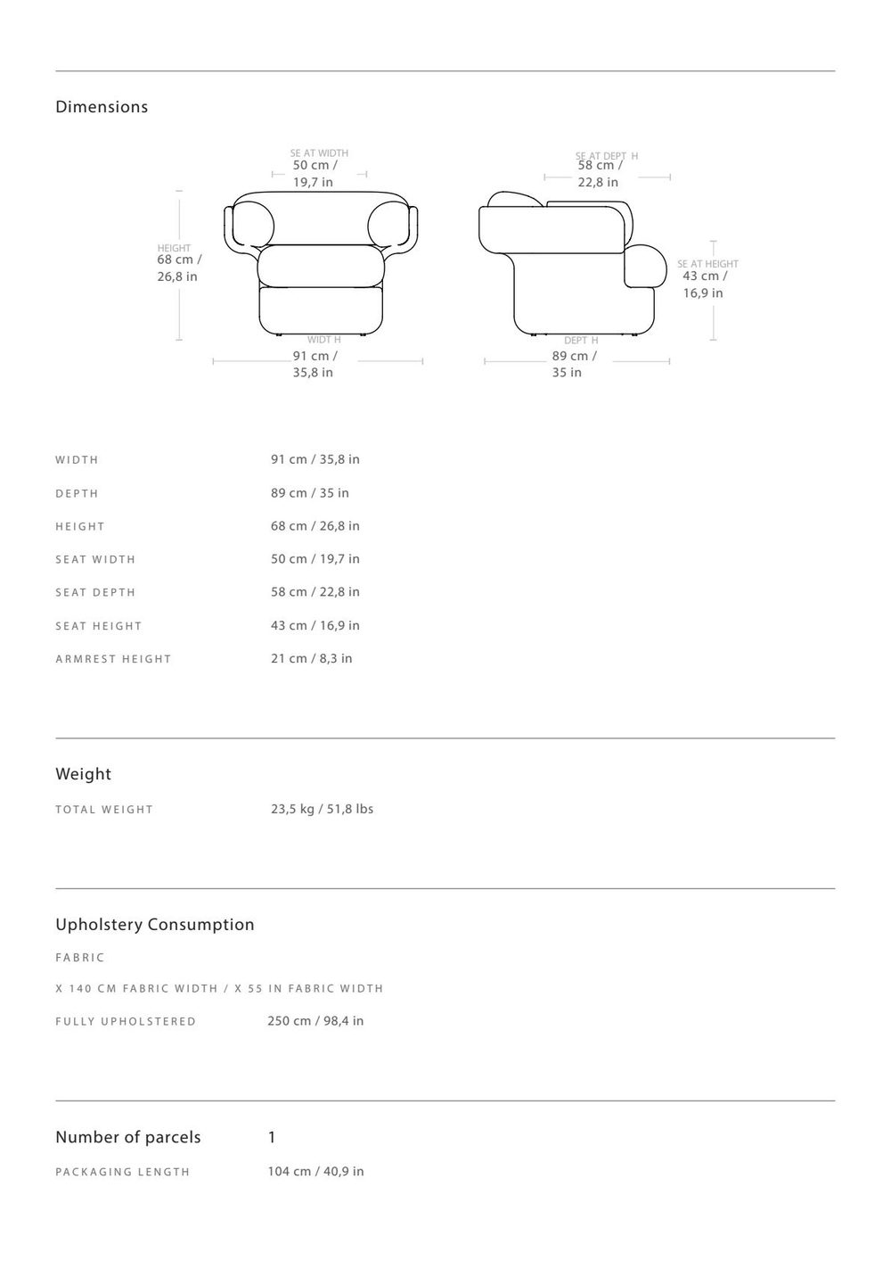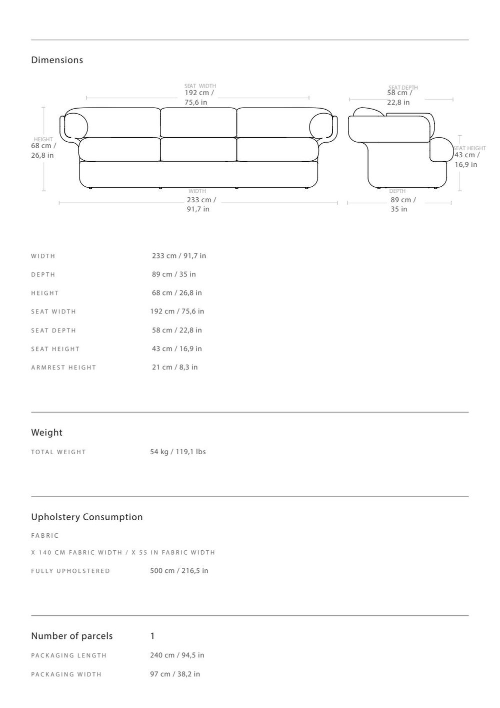 - τη διάσταση 89 x 233 x 68 cm (3 θέσιος)