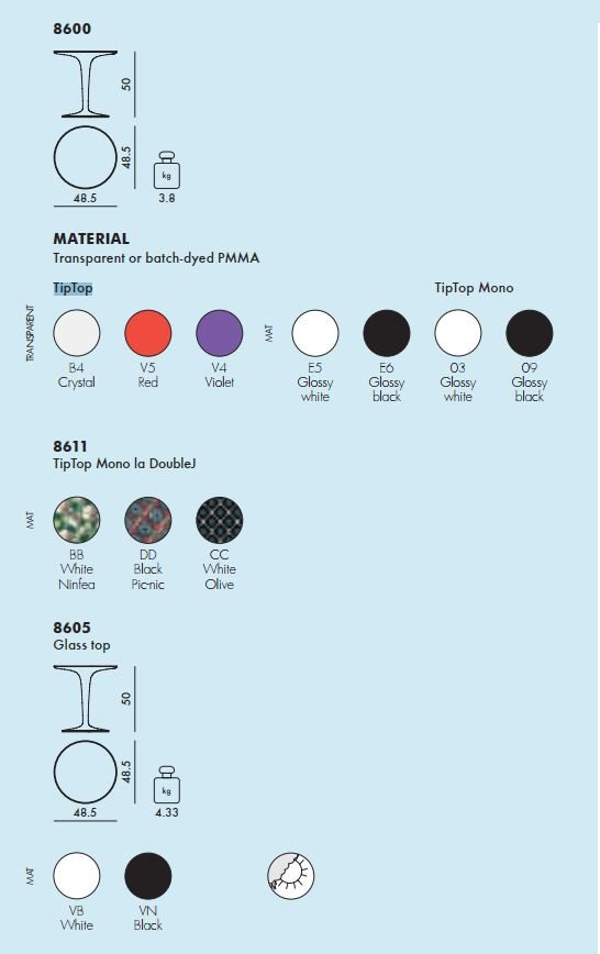 Το TipTop είναι ένα μικρό τραπέζι, ευέλικτο και ελαφρύ! Έχει μια ενιαία βάση πάνω στην οποία στηρίζεται το καπάκι, διαμέτρου 40 εκατοστών.