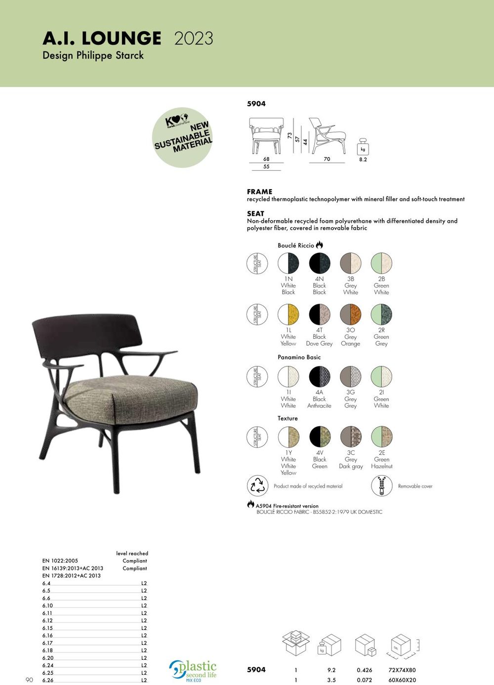 A.I. LOUNGE is the new armchair from the A.I. family that combines sustainable materials and comfort with a graphic design that looks to the future and well-being in our living spaces. An armchair for the living room in which the contours, a distinctive feature of the collection, are combined with maximum seating comfort. Available in white, black, orange and grey and in versions with and without a cushion for indoor and outdoor use.The added value of A.I. lies in the fact that it is the first product family conceived by Artificial Intelligence in response to input received from the designer (Philippe Starck) and the know-how of the company (Kartell). Specifically, creative thinking, company know-how and artificial intelligence have merged to develop a chair model based on an algorithm that respects the original brief of the designer and the company a comfortable product with the structural strength and solidity required while upholding one of Kartell’s main values: to be an injection-moulded industrial product of outstanding aesthetic quality.