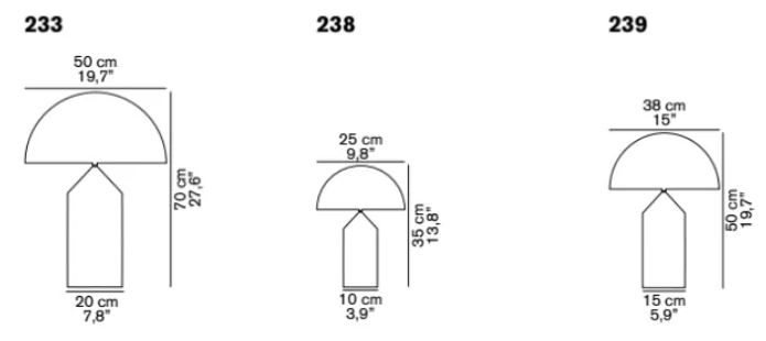 Designed in 1977 by Vico Magistretti, over the years, Atollo has become the archetype of the table lamp, winning the Compasso d’Oro in 1979 and completely revolutionising the way we imagine the classic bedside lamp. The geometric shapes that compose it – cylinder, cone and hemisphere – have resulted in a product that is decorative and essential at the same time, disconnected from the historical period and the fashions of the moment, and one that has now fully become one of the icons of Italian design. Atollo is available in three different sizes and in different finishes: white, black, satin bronze or satin gold metal.