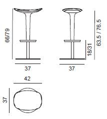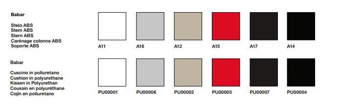 The Babar bar stool from Arper comes with a polyurethene cushion & ABS stem. The base and footrest are in satin finish stainless steel and the seat height extends from 66cm to 79cm.