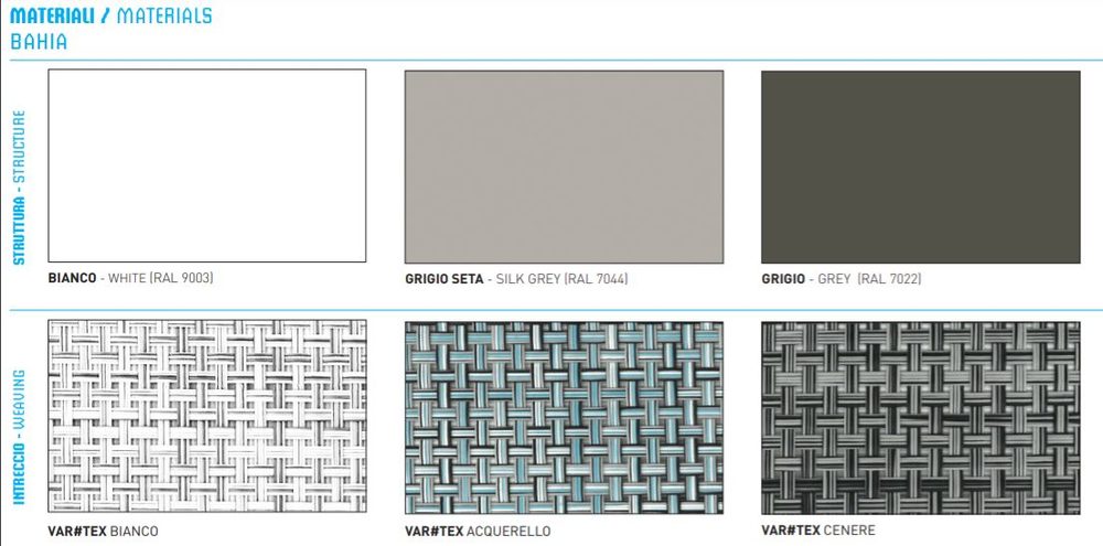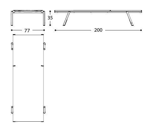 Bahia is a light and handy sunbed, perfect for the beach or swimming pool. Its essential design is embellished with small details that soften the rigorous lines of the structure, such as the circular section of the legs which is revealed on the side of the seat.