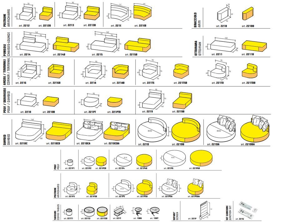 Supporting structure in solid okume wood and padding with Dryfeel® open cell foam, suitable for outdoor use, with removable covers.Weatherproof and UV light resistant structure.