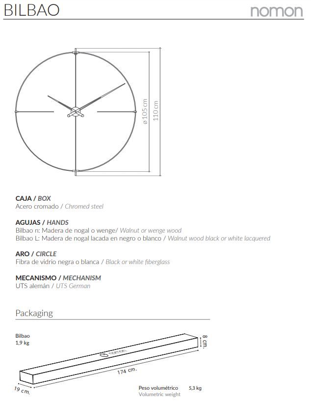 Finishes: box: chromed steel. Hands: walnut lacquered ( black or white), walnut or wenge.
