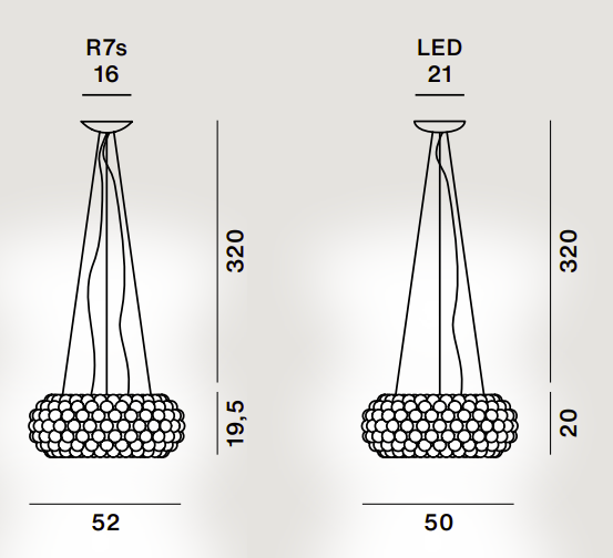 The Caboche suspension is a mosaic of bright and rich refractions, embellishing any room with its extraordinary lighting effect. Described as a “bracelet of sparkling transparent pearls”, when turned on the light diffuses from inside the spheres light bright crystals, bathing interiors in reflective jewel-like light. Offering direct upward and downward light projection and diffusion throughout the space, the Caboche Suspension is not only a decorative piece but also functional.