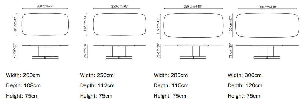 “Cross Table” is available in a rectangular version with a rounded barrel-shaped top in different dimensions.