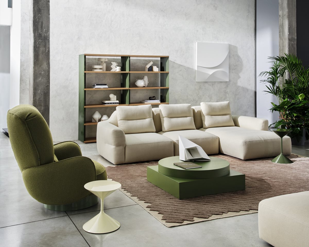 Monobloc, modular sofas and pouf.