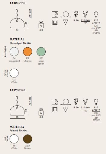 FL/Y is an essentially-styled suspension lamp. The particular transparency of the material and the sheen of the colours recreate the idea of a soap bubble, shimmering iridiscently in the light. The shade is not perfectly hemispherical, with the cut-off falling just below the level of the diameter, offering greater concentration of the light. The lamp is available in three different sizes: Fl/Y (diameter 52cm, shade depth 33cm), Small Fl/Y (diameter 38cm, shade depth 28cm) and Big Fl/Y (diameter 83cm, shade depth 55cm).